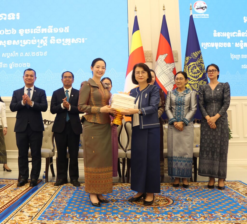 On the afternoon of 6 March 2026, the Ministry of Commerce organized a celebration marking the 115th Anniversary of International Women’s Day, 8 March 2026, under the topic “Peace and Security for Women and Families.” The event was presided over by H.E. Dr. Ing Kantha Phavi, Minister of Women’s Affairs, and H.E. Cham Nimul, Minister of Commerce.
